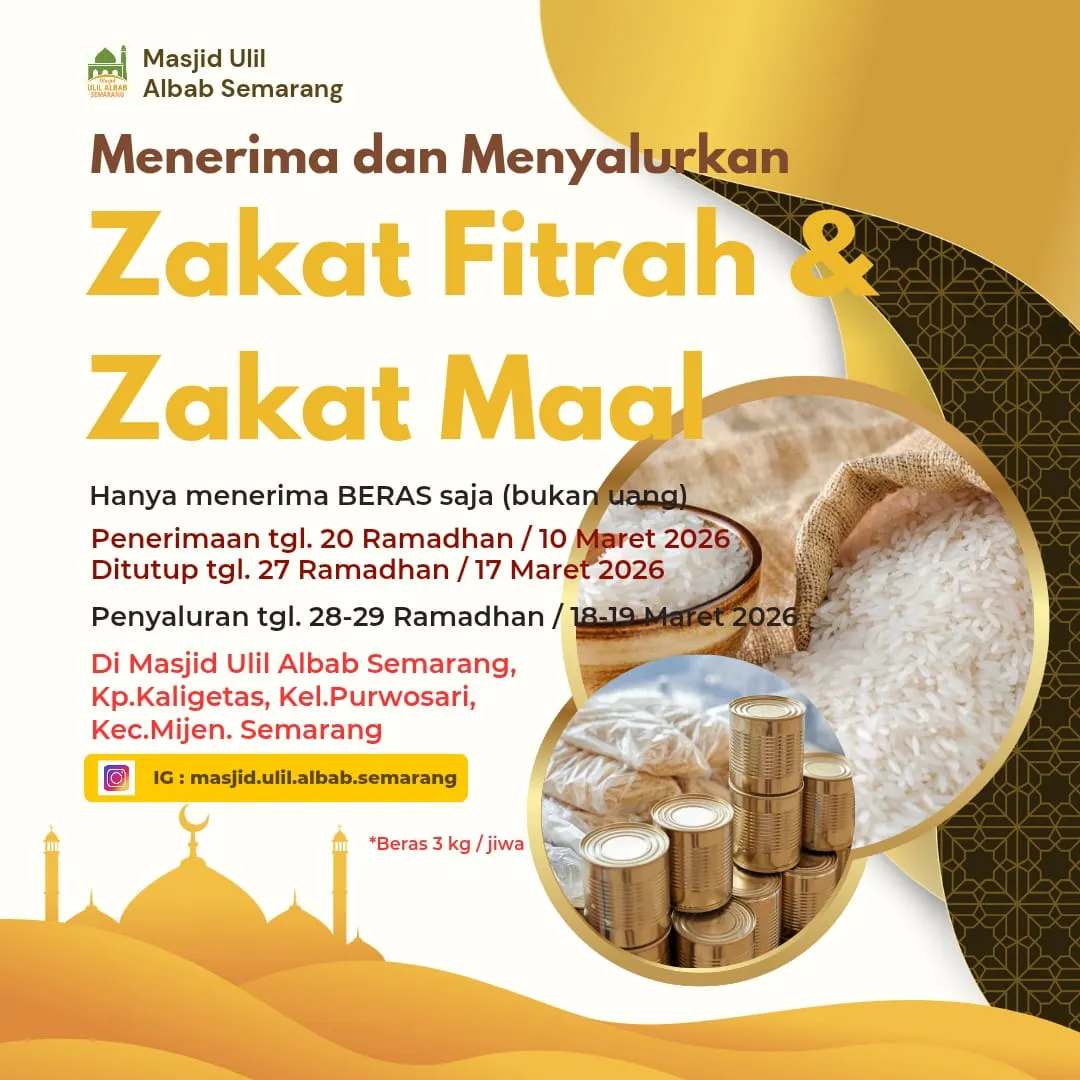 Bismillah, Masjid Ulil Albab Semarang (MUAS) menerima dan menyalurkan Zakat Fitrah & Zakat Maal, In sya Allah… 🙏